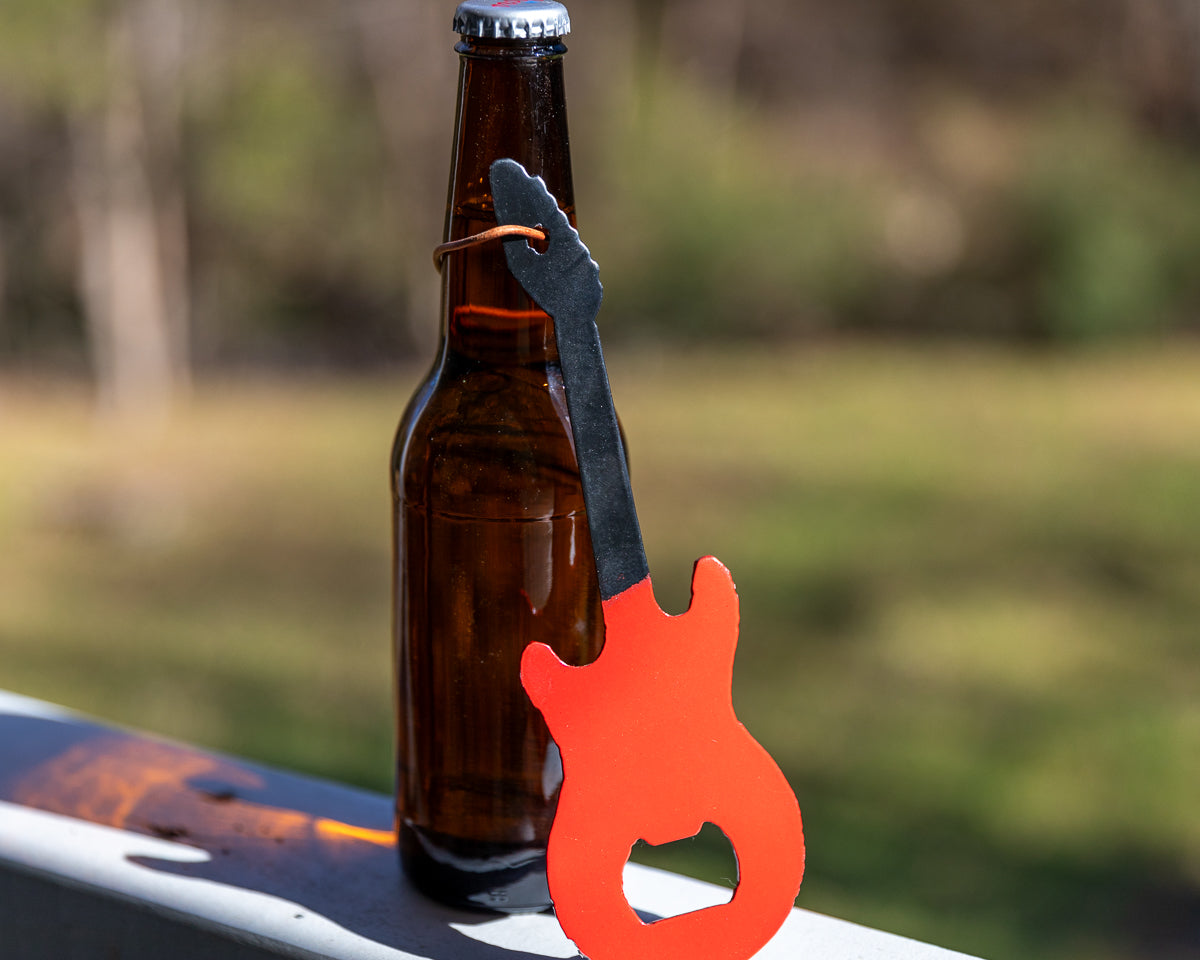 A custom-made guitar bottle opener combines the love for music and the joy of sharing a drink. Crafted with precision, it adds a touch of personality to any gathering, turning the simple act of opening a bottle into a moment of artistic appreciation. Whether it's a gift for a musician friend or a unique addition to your own collection, each strum of the opener echoes with the melody of creativity and craftsmanship.